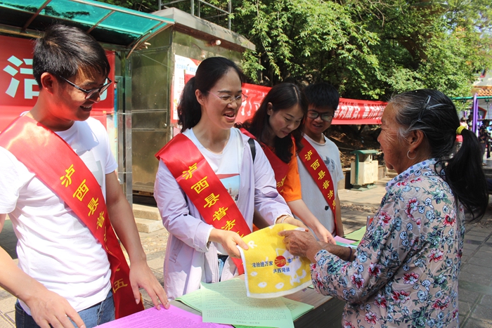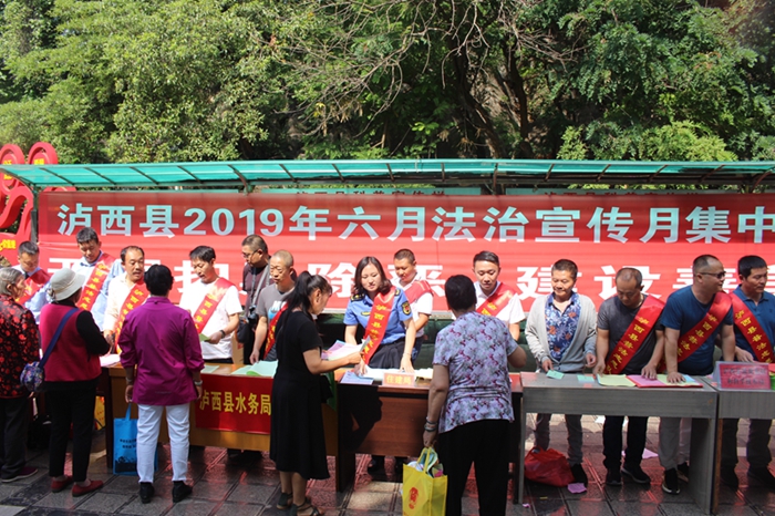 为深入开展全民法治宣传教育,大力弘扬社会主义法治精神,不断推动形成全社会尊法学法守法用法的浓厚氛围,推进“法治泸西”建设。6月3日上午,由泸西县普法办、县司法局主办的泸西县第十五个“六月法治宣传教育月”集中宣传活动在县秀山广场举行,县水利局、县农科局、县住建局、县地震局、县信访局、红河州生态环境局泸西分局、中枢司法所等12个普法责任单位36名普法志愿者参加活动。