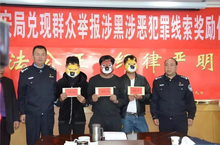 禄丰县公安局 奖励举报涉黑涉恶违法线索群众2人,奖励人民币2000元。