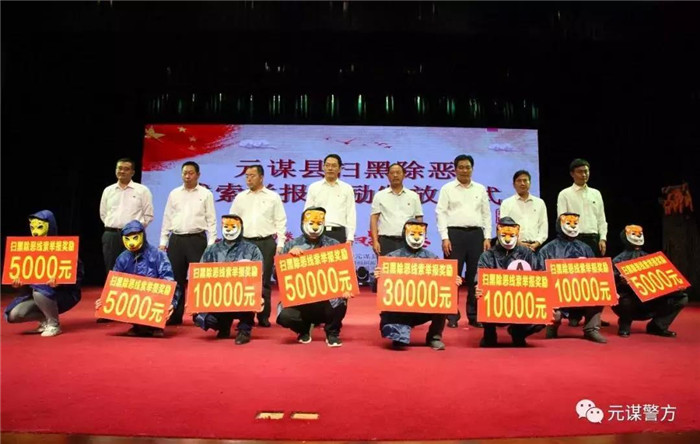 元谋县公安局 奖励举报涉黑涉恶违法线索群众8人,奖励人民币130000元。