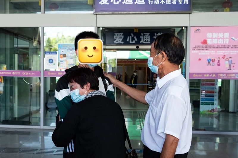 2021年11月16日下午,在西双版纳机场的袁女士夫妇已等待多时,当看到儿子走出大厅,一切的话语都化成了一个紧紧的拥抱。温情的画面不禁让在场的所有人动容,因为这个迟到的拥抱,袁女士已经整整等了二十九年。