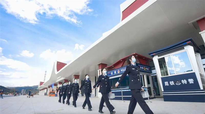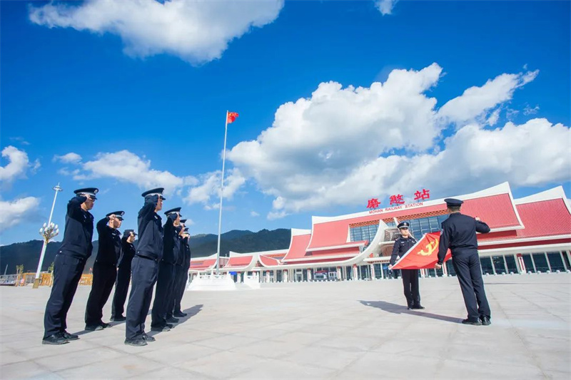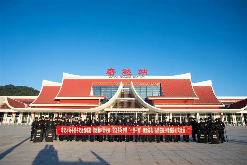 2021年12月3日,中老铁路开通运营,铁路口岸执勤队提前进驻磨憨铁路口岸,圆满完成了开通前的各项准备工作。此后,该队克服营区未建成、住宿条件差的问题,依托现有资源,扎实开展边检业务学习。