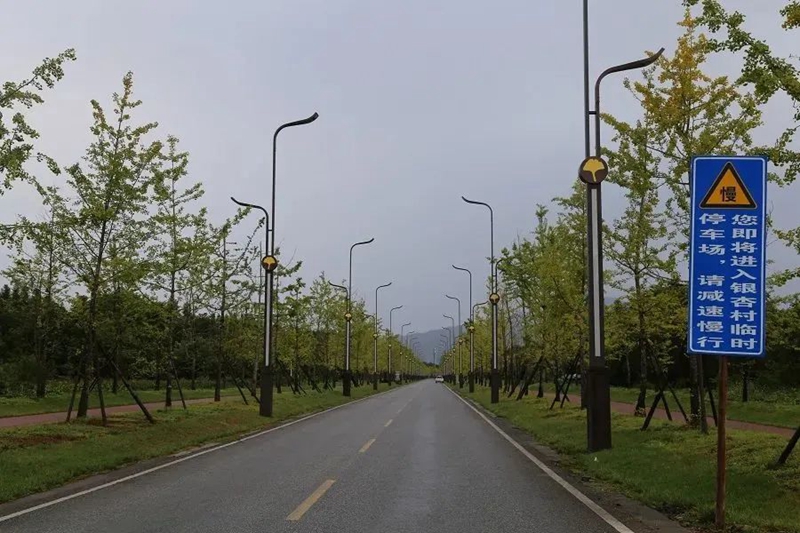 周绍雄介绍,原来坑洼不平的村道不但平坦了,村里还新修了一条9公里的银杏大道,主要路口都设置了爆闪警示灯、减速带和凸反镜,各类交通基础设施基本完善,居民出行条件更好了、更安全了。