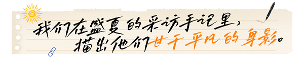 盛夏的傍晚,何丽泽坐在一个小土坡上接受我们的采访,汗水从他的两颊流下,一眨眼便隐入了整齐严实的藏蓝色领口。