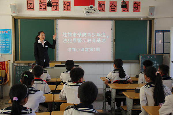 青少年群体是法制宣传教育对象的重中之重,当前,楚雄市青少年法制宣传教育事业已经进入了一个全新的发展阶段,为进一步提高青少年学生的法律意识,增强他们明辨是非、抵御社会不良侵害、依法维权的能力,楚雄市预防青少年违法犯罪警示教育基地积极拓展普法教学功能,创新法制宣传教育模式,10月8日下午,楚雄市预防青少年违法犯罪“法制小课堂”活动第1—4期,在北城小学南路校区正式开讲。