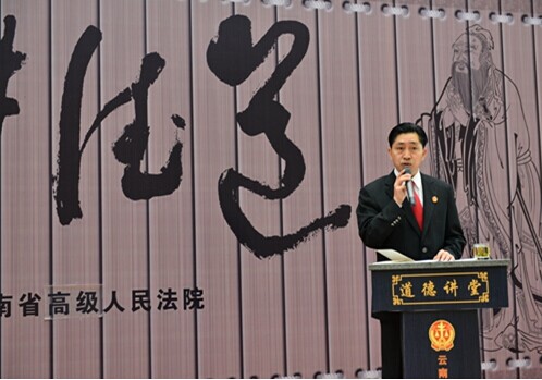 4月21日上午,云南省高级人民法院召开争创省级文明单位动员大会。省高院党组副书记、常务副院长杨为栋出席会议并作动员讲话。党组副书记、副院长刘宁笙主持会议,田成有副院长为全院干警进行了一次生动的道德宣讲,带领全院干警进行了“三字经”诵读,省高院党组成员、院领导,厅级干部、各部门负责人及全体干警参加了会议。