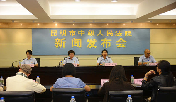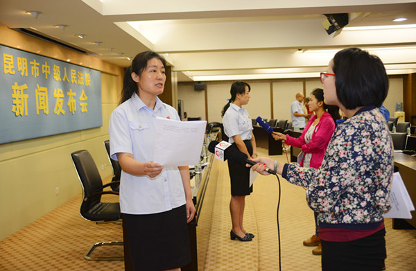 6月11日,昆明中院、五华法院、西山法院两级、三家法院共同在昆明中院举办立案登记制度改革进展情况新闻发布会。昆明中院立案一庭庭长施苏萍、五华法院立案庭庭长牛文和、西山法院院长助理肖非分别向媒体通报了全市法院、五华法院及西山法院立案登记制改革实施一个月以来的情况并回答了记者提问。