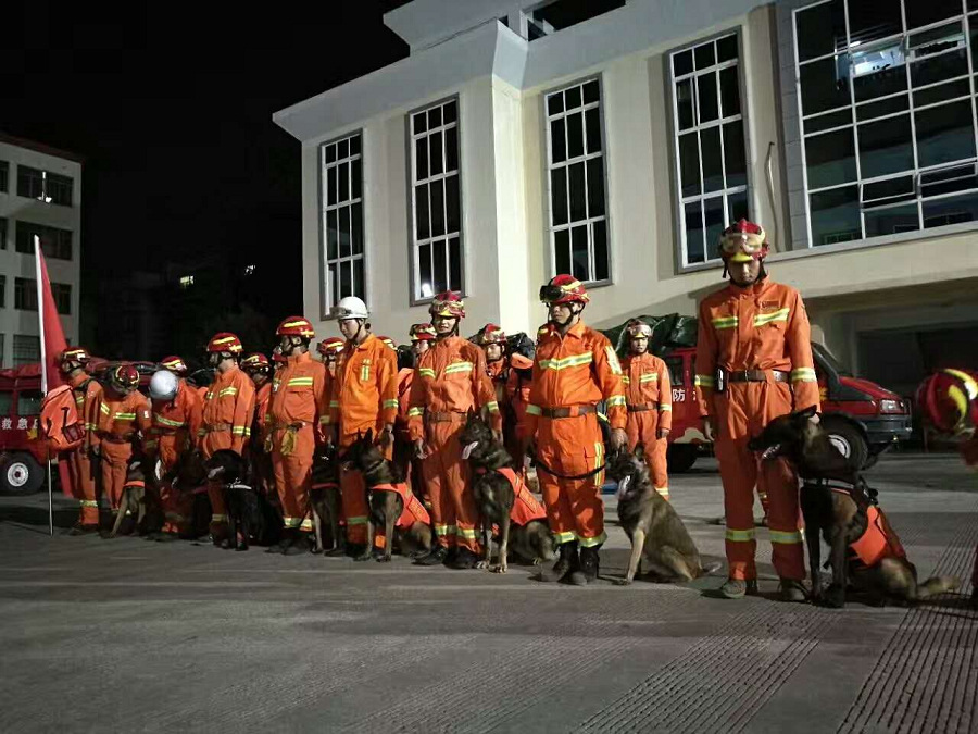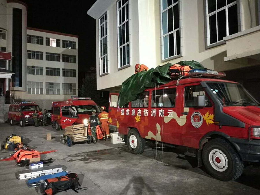 迅速响应集结,部队进入临战状态。地震发生后,支队立即启动《地震应急救援预案》、《跨区域应急救援作战预案》,紧急召开全市消防部队视频调度会,向市委市政府和市公安局汇报准备情况。在昆明开会的赵璐支队长电话要求做好抗震救灾工作,李晓林副支队长带领全勤指挥部、1支轻型搜救队、2支救援分队共10车58人10犬及战勤保障物资集结待命,随时听候总队统一调派。