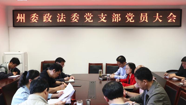 5月3日上午,红河州委政法委党支部召开党员大会,组织全体党员干部职工传达学习近期有关文件精神,安排部署支部有关工作。州委政法委副书记陈洪武、白富强以普通党员身份参加了会议。