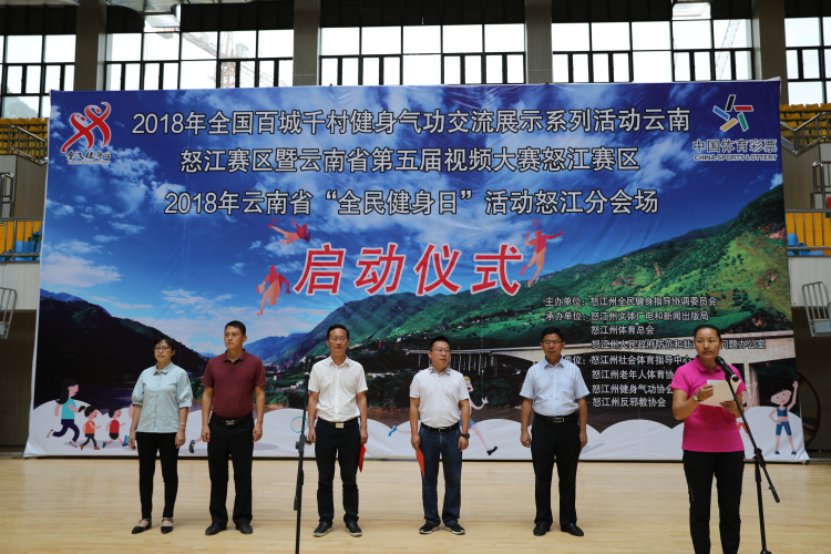 为大力宣传全民健身活动的重大意义,集中推广展示科学健身项目,在第十个全国“全民健身日”来临之际,8月3日,怒江州组织开展了2018年云南省“全民健身日”活动怒江分会场启动仪式,此次活动由州全民健身指导协调委员会主办;怒江州文体广电和新闻出版局、怒江州体育总会、州委防范和处理邪教问题领导小组办公室承办;怒江州社会体育指导中心协办。州委政法委副书记、州委防范和处理邪教办主任倪家荣;州委防范和处理邪教办主任副主任熊美庆出席启动仪式。