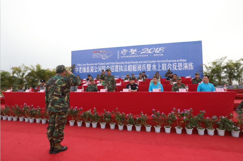 11月21日上午09时,随着演练总指挥老挝波乔省军区维东司令员一声令下,四枚信号弹冉冉升空,由中老缅泰四国12艘执法艇组成的受阅编队缓缓驶过检阅台,标志着中老缅泰湄公河联合巡逻执法“守望—2018”船艇阅兵暨水上联合反恐演练拉开序幕。来自中老缅泰四国执法部门及老挝孟莫沿岸群众、商船员500余人现场观摩演练。