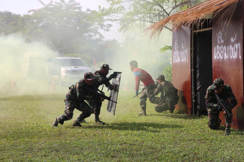 期间,为全面检验湄公河联合巡逻执法七年来四国执法队员联合处置湄公河上突发事件的综合能力,配合开展了无人机侦查、队形变换、水上搜救、水下打捞、武力压制等水上科目及擒敌技能配套、特种战术演示、反恐综合演练等陆地科目演练,对执法队员联合公开查缉、房屋搜索、战地卫勤保障等实战技能科目进行检验。随后,还举办了四国文体交流活动,进一步增进执法队员之间的交流及友谊。