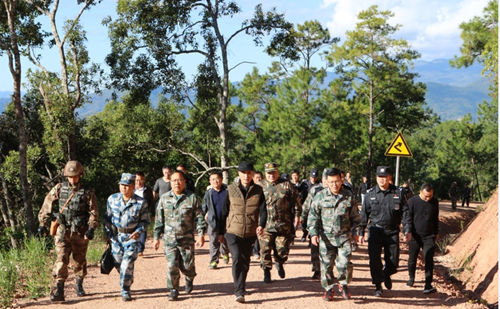 为切实加强稳边、固边、治边能力,提升各职能部门边境管控工作合力。12月1日,普洱市孟连县国防动员委员会牵头组织孟连县委、县人大、县政府、县政协四班子领导,县委政法委、公安、边防、外侨、住环、民政、海关、森林公安等十余家职能单位及驻孟军警部队负责人,在芒信镇党委政府和驻军部队有关人员的陪同下到芒信边境一线开展“走边关”巡边活动。孟连县委书记刀锋,县委副书记、县长李建华,县委副书记黄奇彪,县政协主席左咏洲等领导参加了活动。