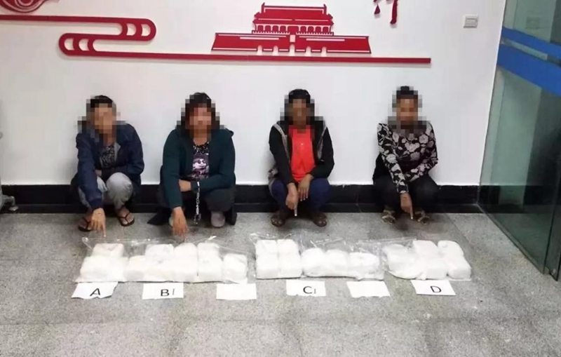 10月4日14时许,巡特警大队、金鸡派出所、出入境管理大队根据工作中掌握线索,在隆阳城区抓获犯罪嫌疑人华某(男,36岁,隆阳区人),现场对华某驾驶的银灰色大众车进行检查,发现车上乘坐的杜丁某、杜丹某、埃某、茉某4名妇女神色慌张,民警随即对其携带的物品进行检查,分别在该4人的旅行包内查获冰毒25块,共计25公斤。