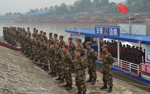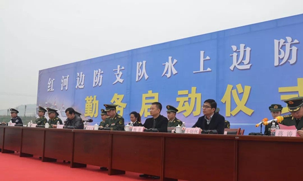 1月16日上午10时,云南红河公安边防支队水上边防派出所勤务启动仪式在河口县的坝洒码头举行,4艘执法艇备航备勤完毕后沿中越界河红河正式开始执法,标志着红河公安边防支队在中越界河等重点水域上“水上巡、陆上查、空中管”的立体化防控体系正式形成。