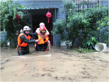 11时15分,大队接到报警称,文山市响水桥老司法局附近居民住宅雨水涌进房屋,有多名群众被困,大队立即出动力量前往救援。11时25分,消防官兵到达现场发现2名成人1名儿童因强降雨导致排水管无法排水,被困家中。了解情况后,消防官兵立即行动,经过官兵10多分钟的努力,顺利将被困群众转移至安全区域。正在救援人员归队途中,大队指挥中心再次接到报警,位于文山市皮肤康小区有1名老人被洪水围困,消防官兵立即调转车头赶赴现场,到达现场后只见小区已大量积水,水深没过了膝盖,救援官兵在报警人的引导下,蹚过积水来到被困老人住处,将被困老人背出房间,转移到安全区域。