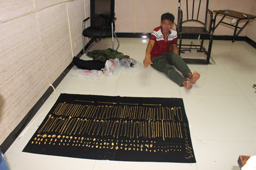 6月25日7时50分,景谷县公安局接到赵某报警称:景谷县文明路“龙凤珠宝金行”首饰被盗,请你们处置。接报后,县公安局领导高度重视,立即抽调县局刑侦、合成作战中心等精干警力组成专案组,并及时召开案情分析会,制定侦查方案,分组开展案件侦破工作。经综合运用各种信息化手段和传统侦查手段,专案民警于案发13小时后成功锁定犯罪嫌疑人,并发现其分别于21日至22日由景永公路2.5公里处卡口进城。6月26日11时许,专案民警在景永公路云海路段设卡布控,发现一名貌似嫌疑人的男子驾驶一辆摩托车经景永公路“普妹饭店”往永平方向驶去,后驱车追击至勐瓦村岔路口成功将其截停抓获,当场从其身上查获黄金项链110条、黄金吊坠109枚、金镶玉吊坠53枚,并从其身上依法提取作案时穿的迷彩服雨衣1套、深蓝色凉鞋1双、白色医用口罩1只、绿色手电筒1只、开锁工具1套。经审讯,犯罪嫌疑人杨某强(男,35岁,临沧市镇康县木厂乡杨柳村人)交待了其于6月25日凌晨,撬门进入景谷县城文明路“龙凤珠宝金行”内盗走大量黄金饰品的犯罪事实。