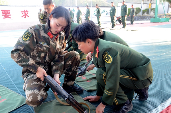 2017年7月,杨林参加骨干集训因表现优秀被选派到总队女兵培训队带新兵,回到单位后,她继续担任新兵复训班长,但这次不一样的是,她带的是男兵女兵综合班。谁说女子不如男,麻辣性格也预示着不管男兵女兵,她一定能带出一支顶呱呱的队伍。