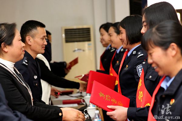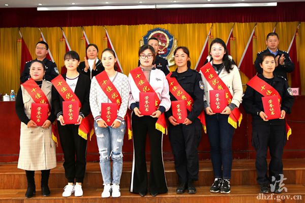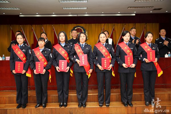 为大力弘扬新时期广大女民警、女辅警和警嫂的先进事迹,凝聚力量、鼓舞斗志,激励她们乘势而上、努力拼搏、开拓进取,德宏边境管理支队、德宏州妇女联合会决定,命名芒市大队民警彭秋燕等10名民警为“十佳巾帼标兵”,命名混板边境派出所教导员唐志宏的妻子柴菊书等10名警嫂为“十佳优秀警嫂”,命名木康边境检查站王钟莹等10名辅警为“十佳优秀女辅警”。当日,与会领导为受表彰的女民警、女辅警及警嫂颁发了荣誉证书。