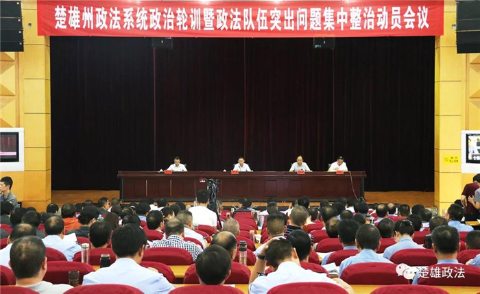 7月10日,楚雄州政法系统政治轮训暨在全州“不忘初心、牢记使命”主题教育先学先改中开展政法队伍突出问题集中整治动员会议以视频形式举行。州、县(市)设11个分会场参加。