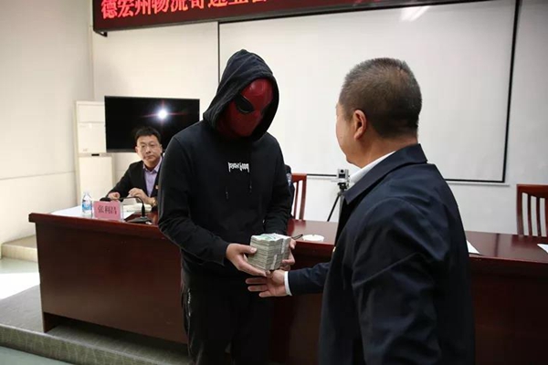会上,边境管理支队通报了近年来物流寄递渠道毒品案件情况,并对禁毒工作中表现突出的2名戴着“蜘蛛侠”“钢铁侠”面具的物流寄递企业“快递小哥”分别给予5万元和3.5万元表彰奖励。