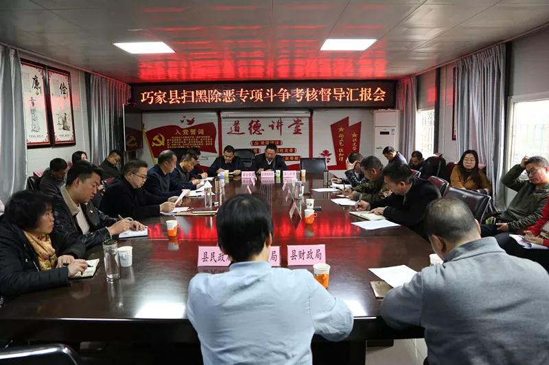 1月30日,考核组召开扫黑除恶专项斗争考核督导汇报会,巧家县委常委、县委政法委书记、县委统战部部长、县扫黑除恶专项斗争工作领导小组常务副组长陈宏作工作汇报,听取汇报后,阚建军对巧家县扫黑除恶专项斗争工作取得的战果和成效给予了充分的肯定,同时指出了工作中存在的问题和短板,对巧家县深入推进扫黑除恶专项斗争工作提出了很好的指导意见,他强调,巧家县要进一步提高政治站位、深化宣传发动、细化线索摸排、压实各部门责任,全力推进扫黑除恶专项斗争。