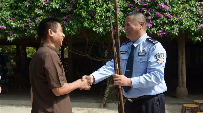 10月16日,勐罕派出所曼么村驻村辅警联合村治保人员深入村寨,运用少数民族语言开展打击整治枪爆违法犯罪宣传。经宣传,村民主动上交了2支自制火药枪。在派出所和社区民警的带领下,驻村辅警充分发挥熟悉少数民族语言和风俗习惯优势,协助公安机关专门从事本村的警务辅助工作,履行治安巡防、纠纷调解、法治宣传、安全防范、便民服务等职责,成为全市社会基层治安管控的一支重要生力军。