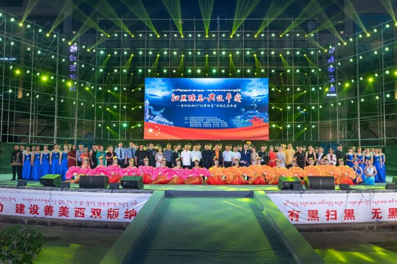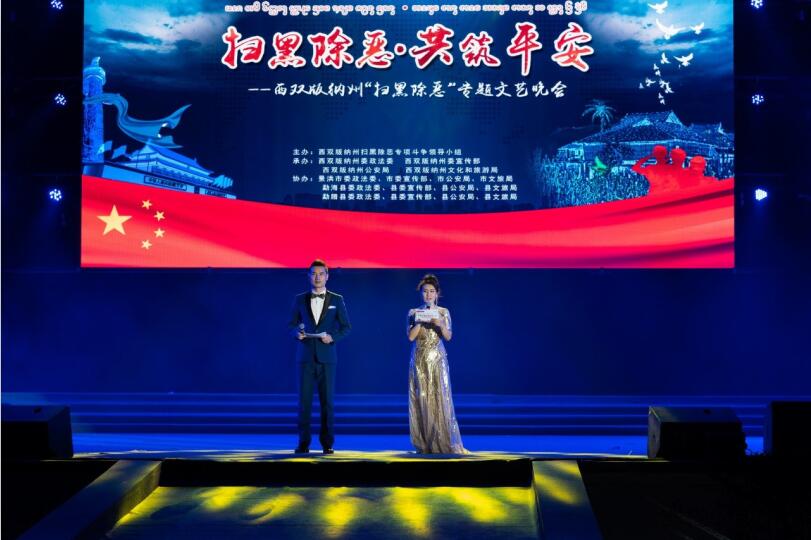 3月25日晚,西双版纳州景洪市泼水广场灯光闪烁、人头攒动、座无虚席,精彩绝伦的西双版纳州“扫黑除恶·共筑平安”专题文艺晚会吸引了众多观众眼球。州人民政府副州长赵家信,副州长、州公安局局长董大伦出席晚会,38家扫黑除恶成员单位及群众代表近1000人观看晚会。