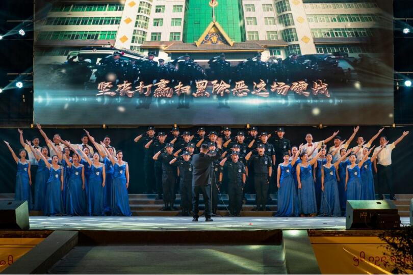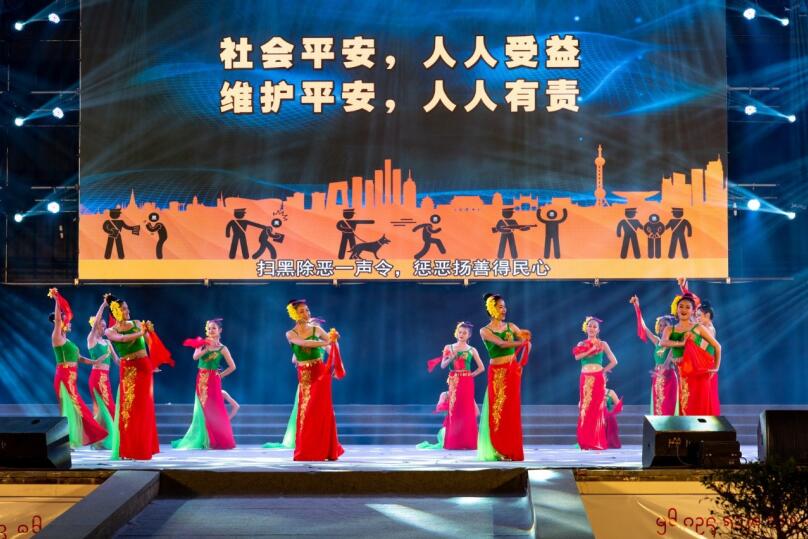 晚8点整,晚会在歌舞《和谐家园》中拉开序幕。晚会分《扫黑除恶亮利剑》《扫黑除恶筑平安》《扫黑除恶创和谐》3个篇章,共14个节目。