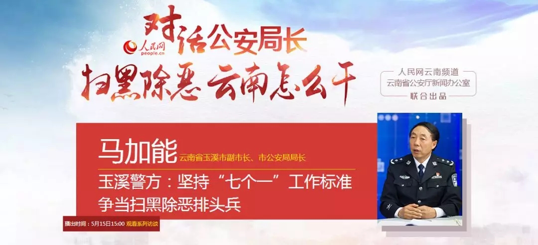 玉溪市副市长、市公安局局长马加能在第四期节目《玉溪警方:坚持“七个一”工作标准 争当扫黑除恶排头兵》中接受专访。