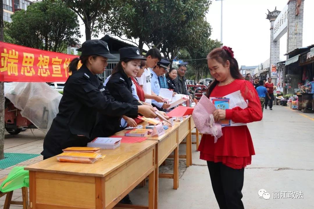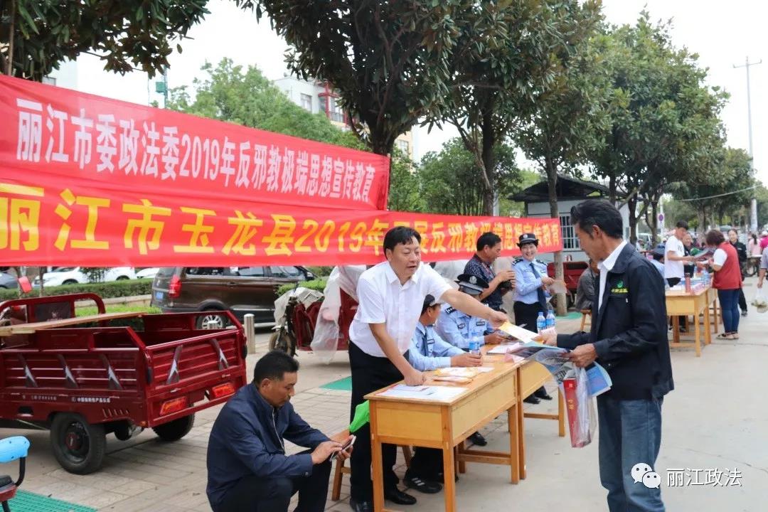 为进一步增强辖区群众对邪教组织的鉴别能力,提高群众反邪教防范意识,营造浓厚的反邪教社会氛围,8月22日,丽江市委政法委联合玉龙县委政法委、玉龙县公安局、黄山镇政府等单位到黄山镇上吉市场开展反邪教宣传活动。