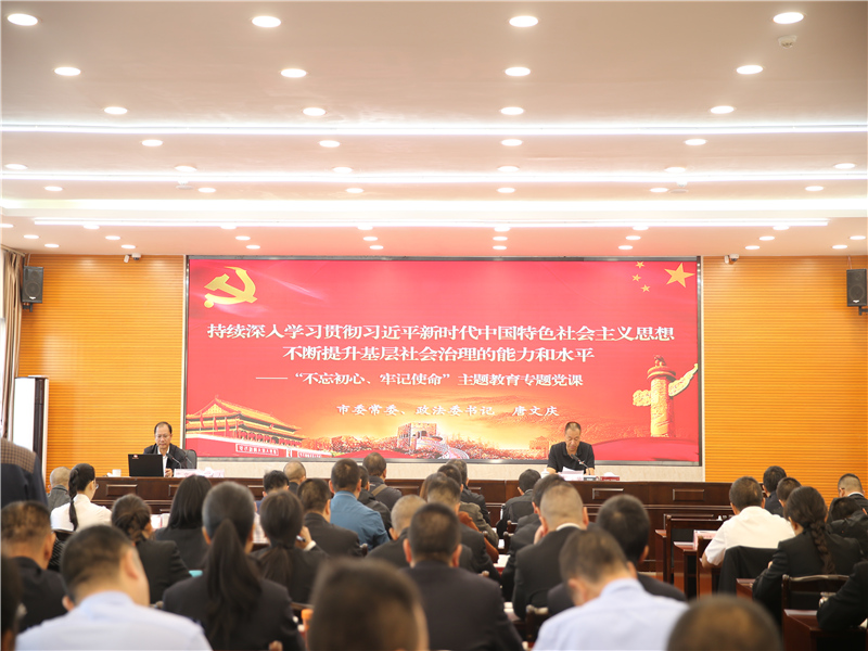 10月31日, 临沧市委常委、市委政法委书记唐文庆紧密结合学习和调研成果,并结合临沧市基层政法队伍和工作实际,以“持续深入学习贯彻习近平新时代中国特色社会主义思想,不断提升基层社会治理的能力和水平”为主题,在临翔区人民法院为基层政法干警讲授专题党课,切实深入推进“不忘初心、牢记使命”主题教育。