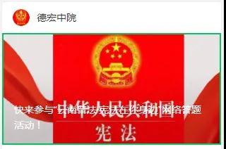 充分发挥“两微一端”等新媒体作用,通过“德宏中院”微信公众号、电子显示横幅等平台积极推送宪法宣传资料,通过微视频、动漫、公益广告等形式充分宣传了:宪法的地位是怎样的?我国现行宪法包括哪几个部分?宪法日设立的意义是什么历年宪法日的主题是什么??宪法规定我国公民的基本权利有哪些?等宪法知识。同时组织干警参加2020年“云南普法·宪法在你身边”网络答题活动和法宣在线2020年“国家宪法日”答题活动,不断掀起宪法宣传热潮。
