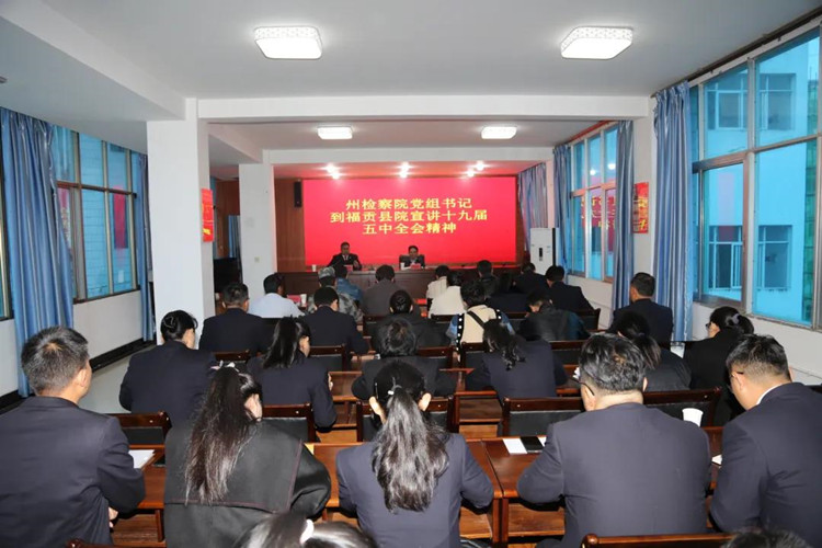 12月4日上午,孔维志到福贡县人民检察院宣讲党的十九届五中全会精神。福贡县院全体干部职工、退休干部代表、挂联村干部群众代表40余人参加。孔维志从“深刻认识我国进入新发展阶段的重大意义、有利条件和重要特征;准确把握二〇三五年和‘十四五’时期我国发展的指导方针、主要目标、重点任务;牢牢把握构建新发展格局的战略构想和重要着力点;坚持党的全面领导,动员各方面力量为实现‘十四五’规划和二〇三五年远景目标而团结奋斗;以全会精神为指,科学谋划好云南‘十四五’宏伟蓝图和二〇三五年远景目标”五个方面进行了全面系统宣讲,着重围绕“新发展阶段、新发展理念、新发展格局”进行了宣讲,着重围绕“怒江每天都在变化,每时都在进步”进行宣讲,让基层检察干警对五中全会精神和怒江州情有了更深入的理解和把握。