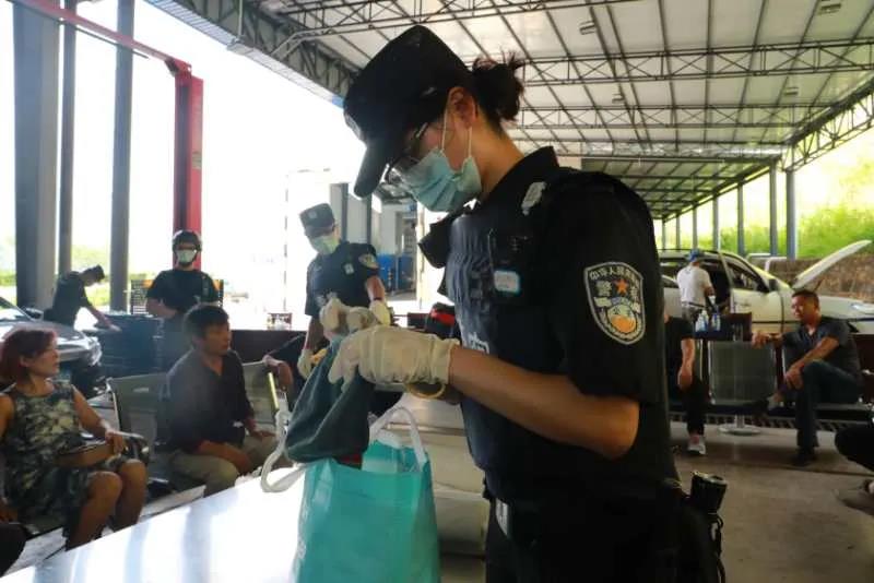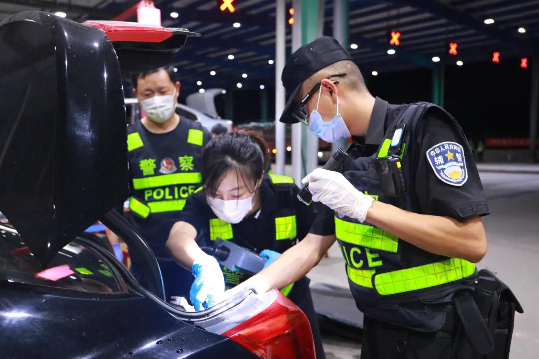 身着厚重的防弹衣、戴着闷热的口罩、护目镜,8小时不间断执勤,受着40多度的高温,钻车底、爬货厢、查货物……条件艰苦,但是民警们却干劲十足,日均查车7000余辆、询问旅客群众12000余人、检查快递包裹10000余个。