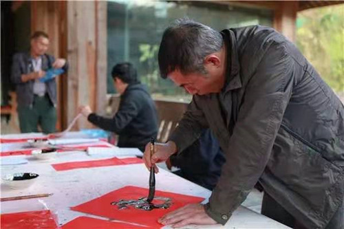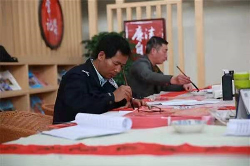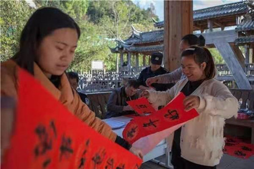 无联不成春,有联春更浓。在普洱市公安局办公楼大厅、在景谷县正兴镇水平村挂钩扶贫点、在宁洱县同心镇那柯里“茶马古道”全省特色小镇,文艺小分队的书法爱好者挥毫泼墨,一幅幅春联,一个个“福”字,让警营活跃,让年味更浓。“感党恩写春联送祝福”活动受到群众的热烈欢迎,一幅幅寓意吉祥的春联、一个个饱含美好祝愿的“福”字跃然纸上,让群众更加深切地感受到了党实施脱贫攻坚、惠民政策的恩情,“多劳多得人人乐,丰产丰收岁岁甜”等充满正能量的扶贫励志对联,极大地激发了广大群众勤劳致富、决胜全面小康的信心和决心。当那一幅幅散发着墨香的对联和“福”字交到群众手中时,也把党和政府以及公安机关的祝福和温暖送到了群众心中。