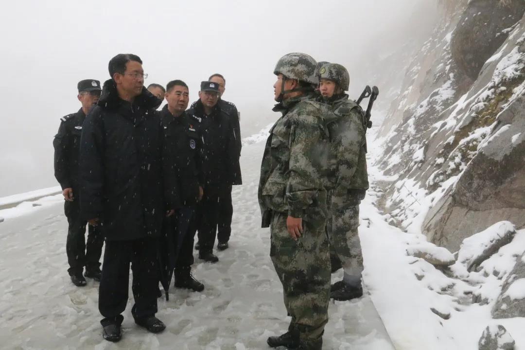 调研期间,徐贤还深入41号、35号界桩沿线进行实地踏勘。贡山县人民政府副县长、县公安局局长段杰,县公安边境管理大队政治教导员周嵘,州公安局政治部、警务保障处相关民警参加调研。