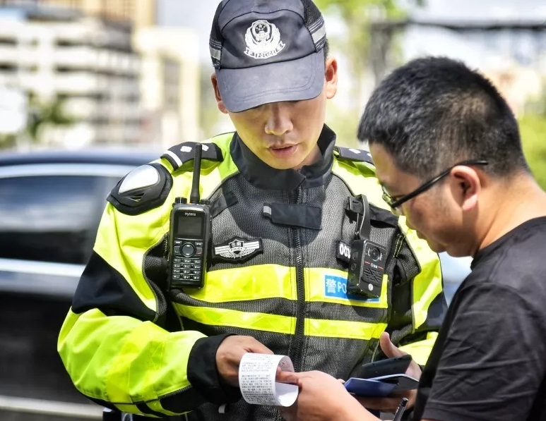 今年的5月,高温袭“昆”,奠伟和同组队员照常在人民西路与春雨路交叉口执勤,主要工作就是检查来往车辆。拦停、检查、问询、处理,一套标准操作,奠伟做得十分流畅。如果不是有红外测温仪显示的温度,还以为他们就是一群不怕晒的超人。头戴重约2.5公斤的骑行头盔,身穿全副武装的黑色骑行服,脚踏严严实实的骑行靴,穿戴成这样,在30℃的高温下工作。经红外测温仪测试,骑警的工作服温度竟然达到了45℃。这个温度,也是昆明骑警坚守岗位、守护春城的温度。
