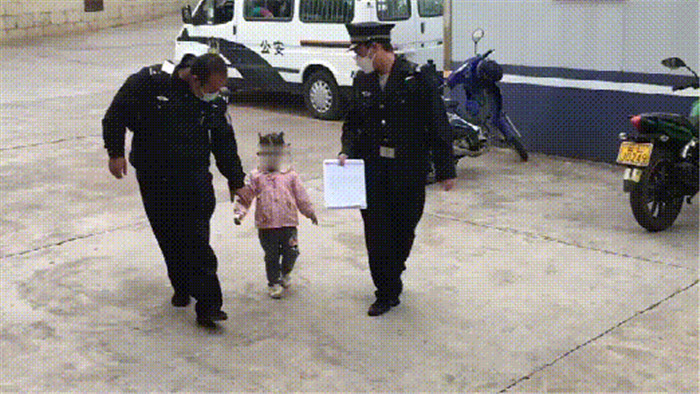 在民警的耐心安抚下,小女孩慢慢地说出了家庭住址,但却无法说清父母的名字。民警只能将小女孩带到她所说的地址附近询问,可大家都不认识这个孩子。眼看快要天黑了,考虑到小女孩还没有吃饭,民警牵着小女孩回到了派出所。
