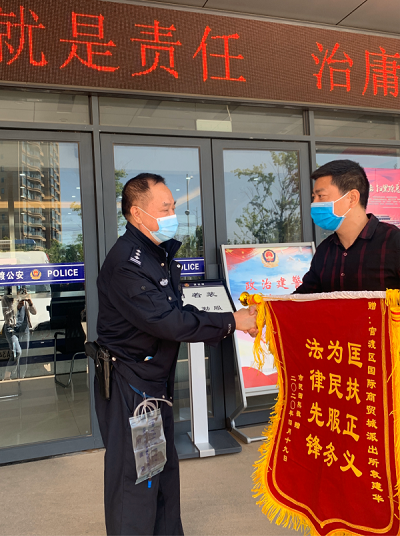 这样的事情数不胜数。2019年12月,田某跟商家退衣服时发生纠纷,引发打斗,田某鼻子被打伤,双方就赔偿问题争执不下,经袁建华调解,达成和解。2020年4月20日,田某特委托朋友给“老袁哥”送来锦旗表示感谢。