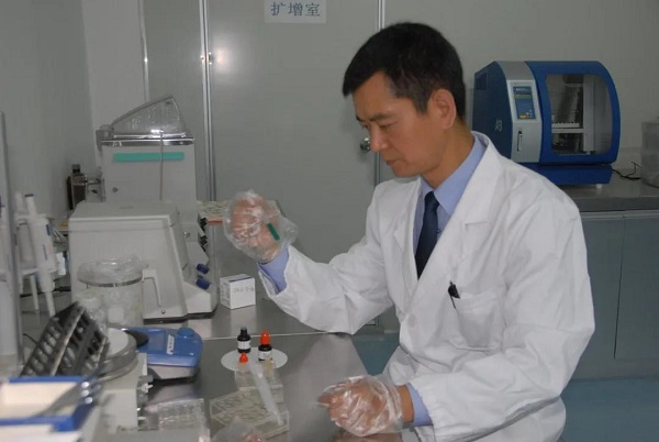 独创“蒋佳林提取法”。有点冰冷的DNA实验室,各种大大小小的精密仪器有序摆放着。“别看实验室小,保山所有县区和园区的刑事案件生物检材都要送到这里。哪怕只是针尖大的血迹,都藏着定罪论案的依据。”蒋佳林说。蒋佳林来到物证提取室,用剪刀轻轻剪开两个物证袋,小心翼翼地将一枚烟头和一支带血迹的棉签取出。“这是遗留在案发现场的血迹和一枚烟头,我要从中提取DNA。”蒋佳林把血迹和烟头轻轻放在准备好的白纸上,剪切、装瓶、加试剂、加热……整个过程,他都十分专注。他的双眼紧盯着试管内试剂的变化,桌上的时针一分一秒地走着。干起活来,一坐就是几个小时,甚至是十几个小时,这就是蒋佳林的工作常态。2010年,蒋佳林接到一起一案两命的大案,犯罪嫌疑人在失踪19天后被发现溺亡。如果溺亡者是真凶、如果他衣服上溅到死者的血迹、如果……带着种种猜测,他找到了嫌疑死者满是泥巴的衣服。几经细查,终于发现膝盖位置有两滴疑似血迹的污渍。经过反复DNA检验,却始终难以确定疑似血迹属于何人,这让他又一次陷入迷茫。如果能降低产物量标准,如果能将DNA鉴定技术服务实战效果发挥得再充分一些……蒋佳林决定把这些假设变成现实。他立即上网查资料、与友邻同行交流,并用自己、家人和朋友的毛发等作生物检材反复试验。