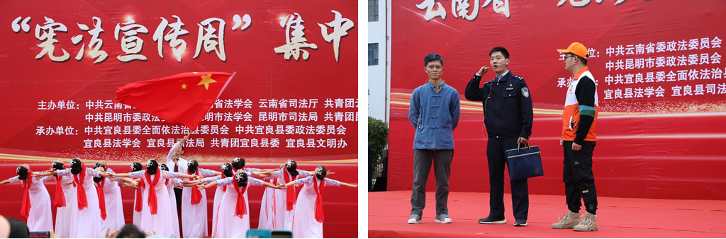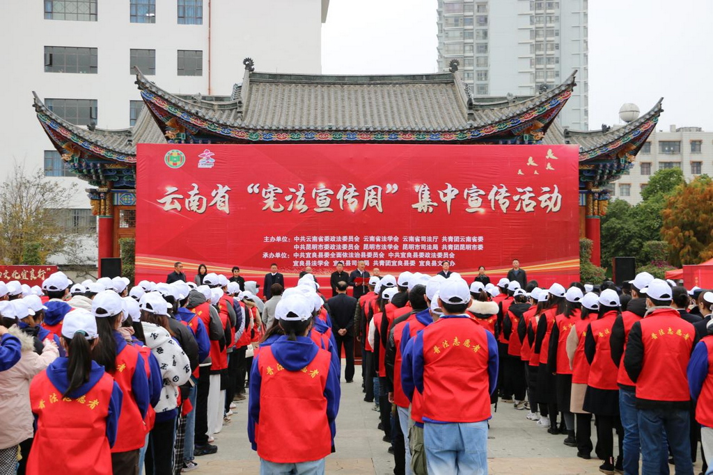 12月7日,由省委政法委、省法学会、省司法厅、团省委、市委政法委、市法学会、市司法局、团市委主办,由宜良县依法治县委员会、县委政法、县法学会、县司法局、团县委、县文明办共同承办的云南省“宪法宣传周”暨“青年普法志愿者法治文化宜良行”集中宣传活动在宜良县文化广场隆重举行。