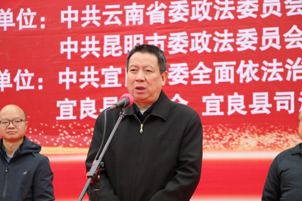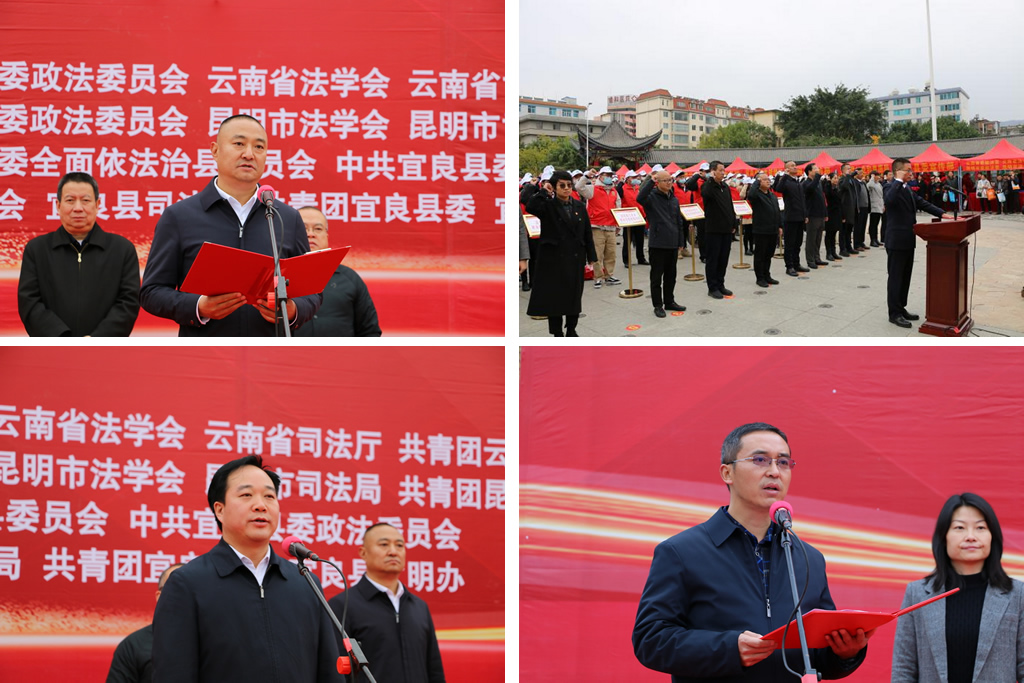 省法学会常务副会长赵祖莹出席活动并宣布活动启动,昆明市委政法委常务副书记、市法学会常务副会长都吉参加活动并致辞。团市委副书记袁野,宜良县委、县政府主要领导,县四班子分管联系领导、法、检、公、司等主要领导、68家普法责任单位的主要负责同志、12支普法志愿服务队、新闻媒体记者以及社会各界群众等400余人参加活动。