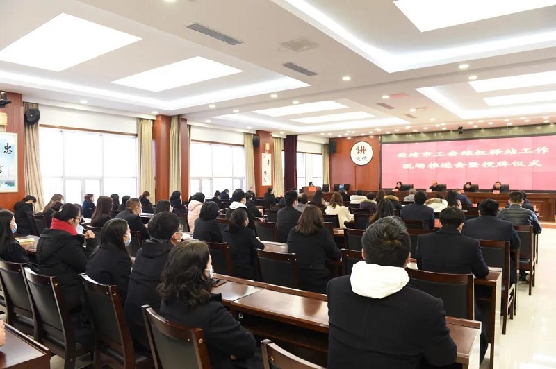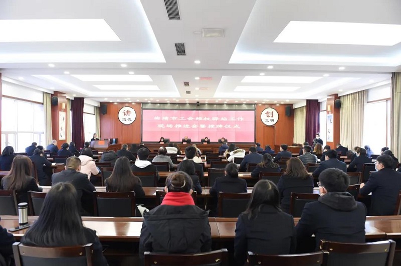 1月29日,曲靖市工会维权驿站工作现场推进会暨授牌仪式在麒麟区人民法院举行。曲靖市总工会主席聂祖良,副主席陶丽萍,麒麟区总工会主席桂竟程,麒麟法院党组书记、院长高红丽出席会议。