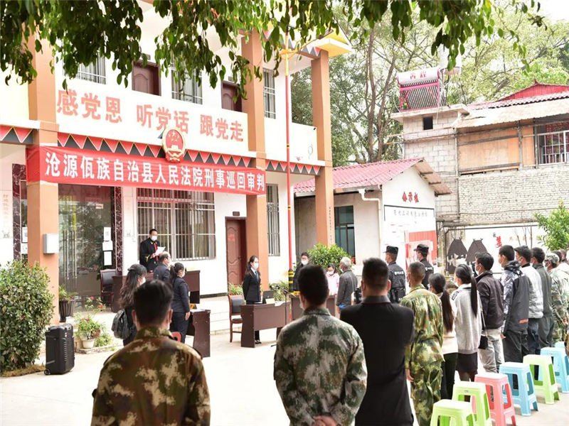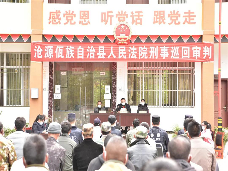 2月26日上午,由沧源佤族自治县县委政法委主办,临沧边境管理支队协助县人民法院举行的刑事审判庭在芒卡镇芒岗村,通过巡回审判的方式对白某、李某运送他人偷越国(边)境罪一案和捌某非法猎捕、杀害珍贵、濒危野生动物罪一案进行一审公开宣判,芒卡镇边境村部分村组干部、群众代表近200余人“零距离”感受庭审。
