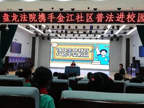 在六一儿童节即将到来之际,为预防校园安全事故、普及反恐知识、加强未成年人法律保护,昆明市盘龙区人民法院与金江社区、金康园小学三方携手开展“普法进校园”活动。2021年5月26日下午,盘龙区金康园小学二年级的部分学生及老师们走进盘龙法院,“零距离”接受普法教育。