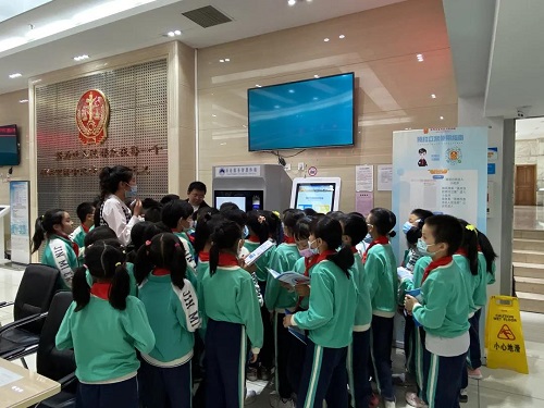 此外,同学们还在法官“老师”的指导下,亲自体验了现代化诉讼服务设施设备,并发出了“法院不仅有意思,而且很智能”的感叹。