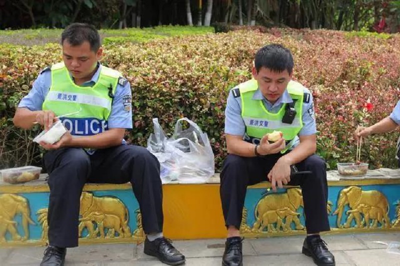 午饭过后,执勤交警调整休息一会儿,马上又将开始中午上班高峰时段勤务。在午高峰过后,为确保当前景洪市蓝天保卫战取得实效,他们又投入到渣土车、拖拉机、货车等联合整治行动中。他们头顶烈日,汗湿衣背,在尘土飞扬中坚守岗位。