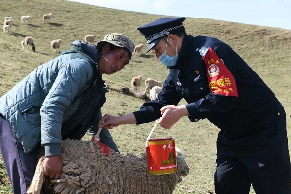 创新推出“羊群户籍化管理办法”。 在万亩草山上,养育着1万多只绵羊,羊羊相似、混杂难辨,大海派出所结合牧民的习惯,自筹资金购置红绿两种油漆,使用点、线、圆三种形状,在羊的头、脖、背、腹四个不同部位作标记,通过不同的排列组合形成了各家羊的密码,这个密码牧民认得清、民警认得出。10058只绵羊自从上了户口,草山上每月“零纠纷”“零发案”成为了常态。
