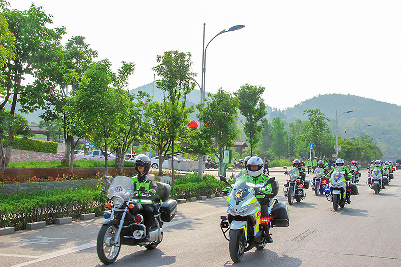 近日,百余辆铁骑集结列队,玉溪市公安机关“情指巡防”一体化骑警队首巡启动仪式在玉溪瀑布生态公园举行。