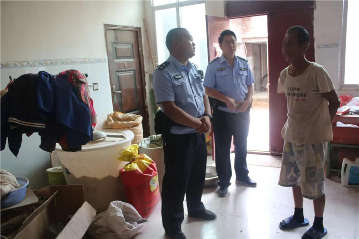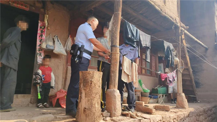 时隔一小时后,东坡派出所接到杨某某父亲的电话,称已经找到杨某某并将其控制。民警火速赶到杨某某家后,看见嫌疑人被自己父亲用绳子绑在家中的柱子上。民警询问后得知,杨某某父亲此举是害怕儿子在民警到达现场前逃跑。